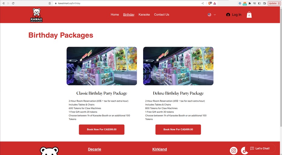 The newly developed website for Kawaii Boutique brings an immersive and engaging digital experience to match the fun of its Asian-themed claw machine boutique. Designed to streamline online booking, payment processing, and staff scheduling, the site also integrates a unique token redemption system, allowing customers to trade their winnings for in-store items. With automated event management and custom birthday invitation creation, Kawaii Boutique now offers a seamless and interactive experience for both casual visitors and party organizers.
