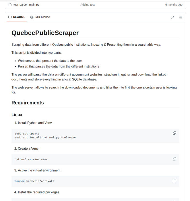 By automating the process of scraping, cleaning, categorizing, and storing public government data, the Quebec Public Data Parser enables users to easily access and analyze large datasets without the hassle of manual data entry or disorganized files. This project represents a significant step forward in making public information more accessible, organized, and ready for analysis.